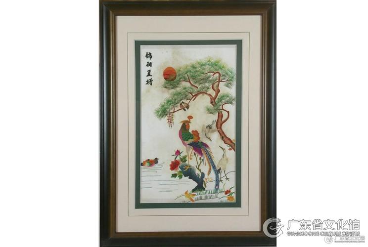 传统广绣构图、针法、题材自成一格,多以绒绣为主,针法包括直针、捆咬针、捆插针、打籽针等三十余种,以及钉金绣中的平绣、织锦绣、饶绣、凸绣、贴花绣等十多种针法。
