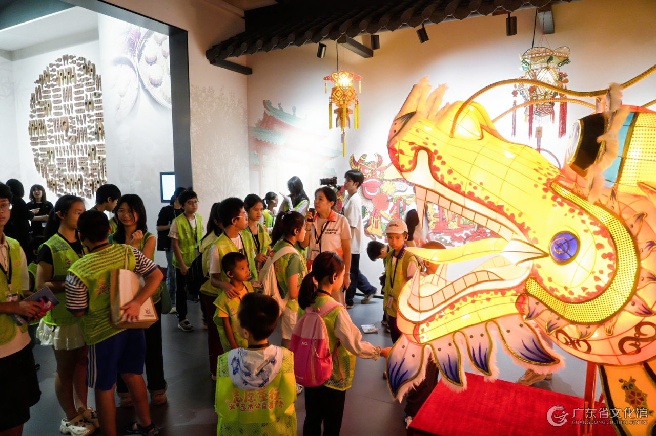 学员们在省非遗馆探索馆藏灯彩作品