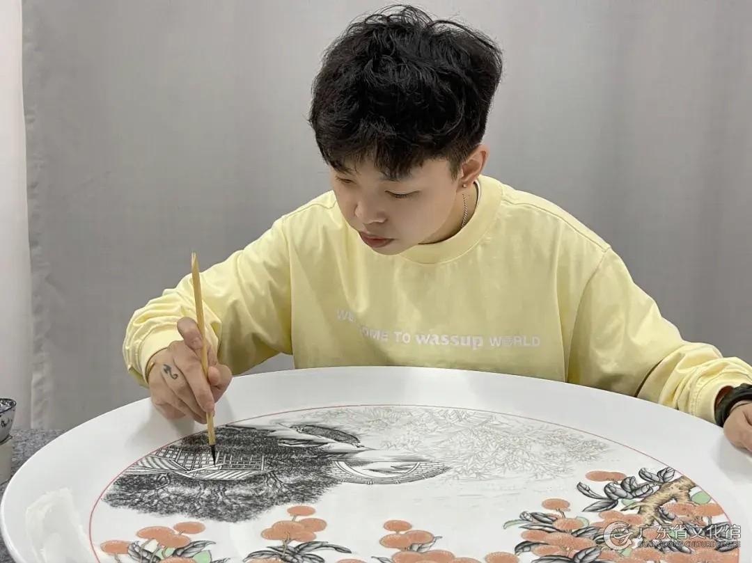 何静仪,广彩第六代传承人,师从省级代表性传承人何丽芬,也是“上上签”文创创作人。作为广州非遗新生代,她身兼广东省工艺美术师、广彩培训导师等多重身份,同时担任广东省文化馆“成长树”授课老师,致力于广彩的活化与推广。她推动“广彩进校园”近10年,长期走进中小学开展体验课程,通过讲解广彩历史、示范绘制技法、指导学生亲手创作瓷盘等形式,让青少年零距离感受非遗魅力,累计合作多所学校,参与学生超千人。