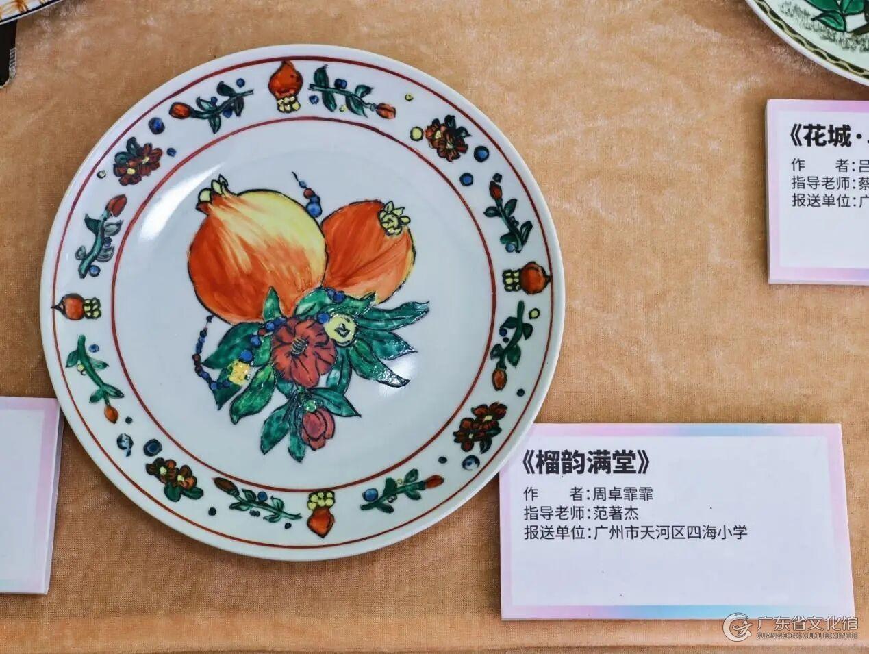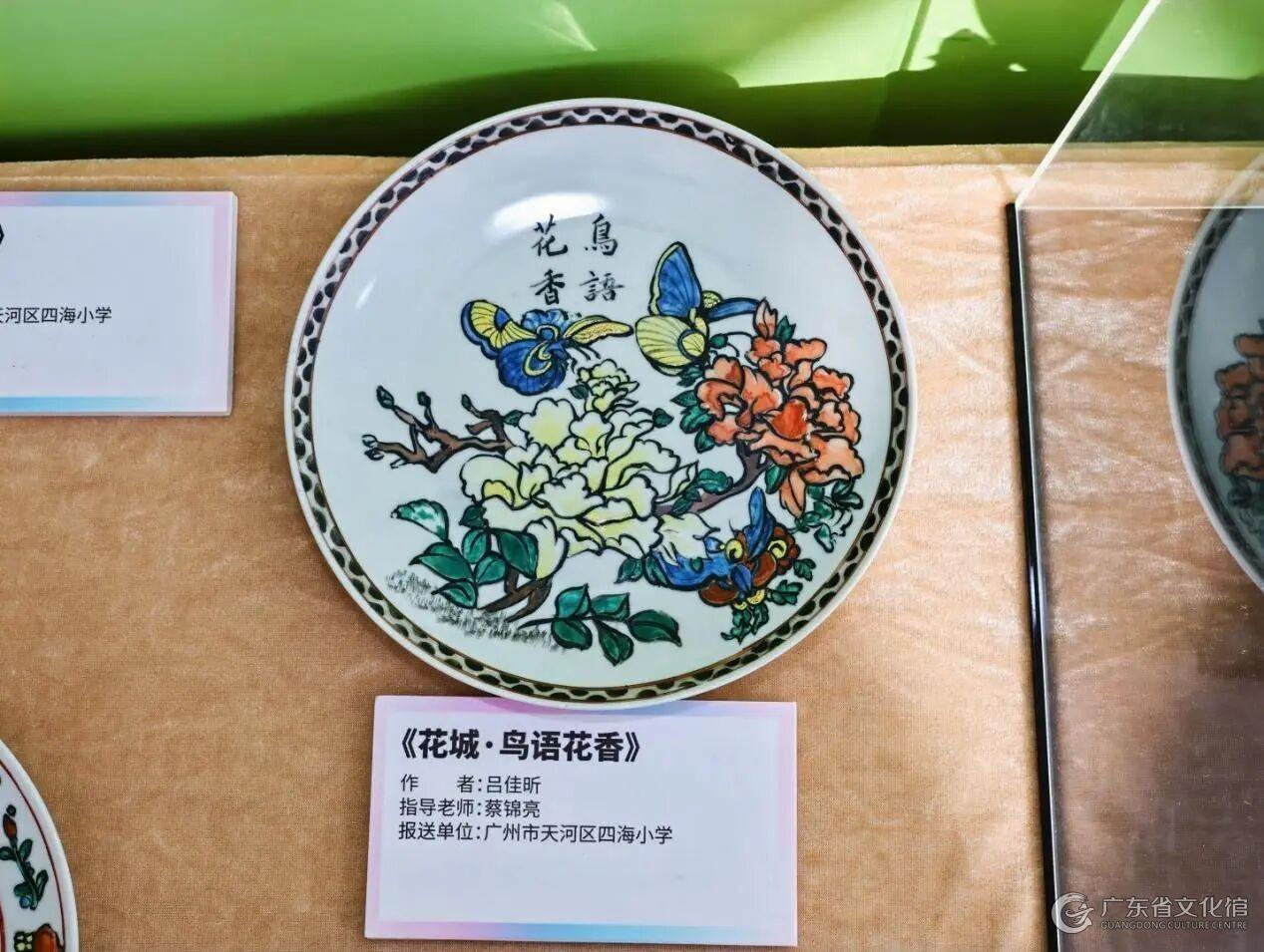 学校邀请广彩非遗传承人与校内美术教师协同授课,引导学生将线描的流畅笔触转化为瓷器上的精美纹样,创作出众多兼具传统韵味与现代审美的广彩作品。本次报送的学生作品涵盖广彩瓷盘、书签、茶具等多种形式,线条流畅细腻,画面雅致灵动,既展现了学生在技艺上的扎实功底,也体现了学校通过课程融合推动美育深化、传承岭南文化的育人成效。