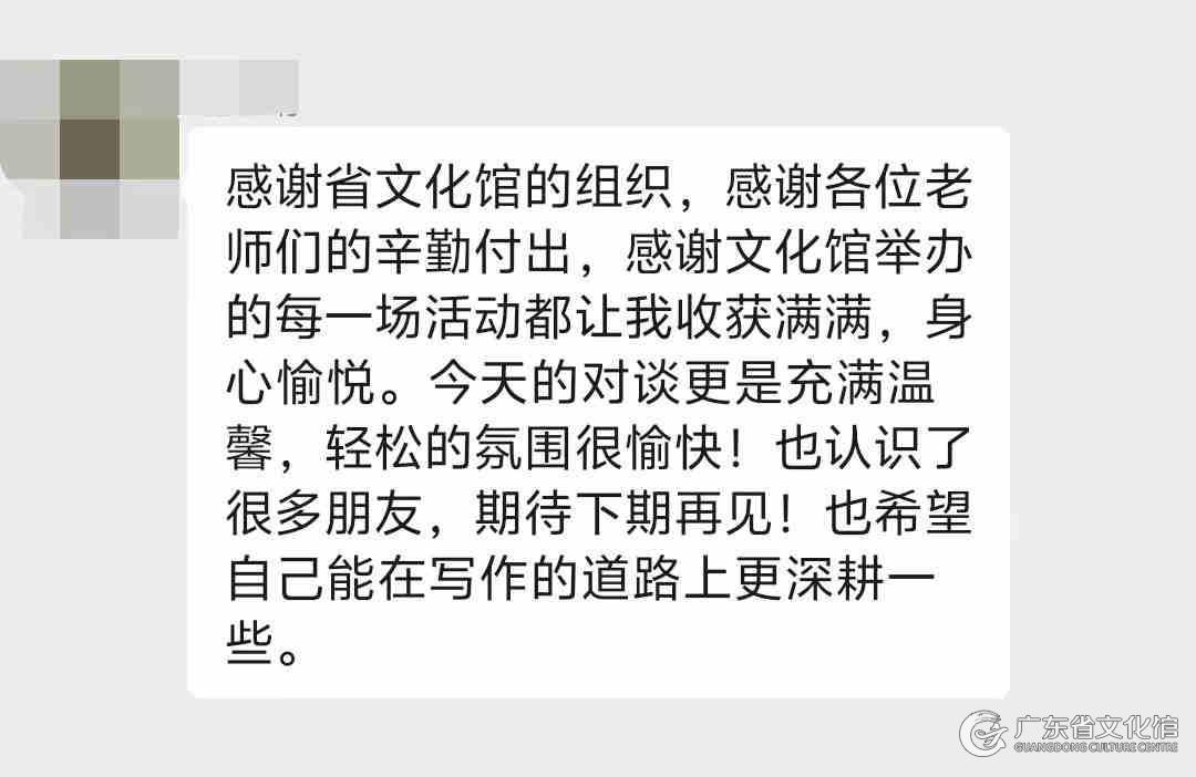 未来,广东省文化馆将继续践行“新大众文艺”理念,深耕“文心笔谈”品牌活动,推动全民艺术普及向纵深发展,助力更多素人写作者以文字记录时代脉搏,共同书写属于大众的文学新篇章。