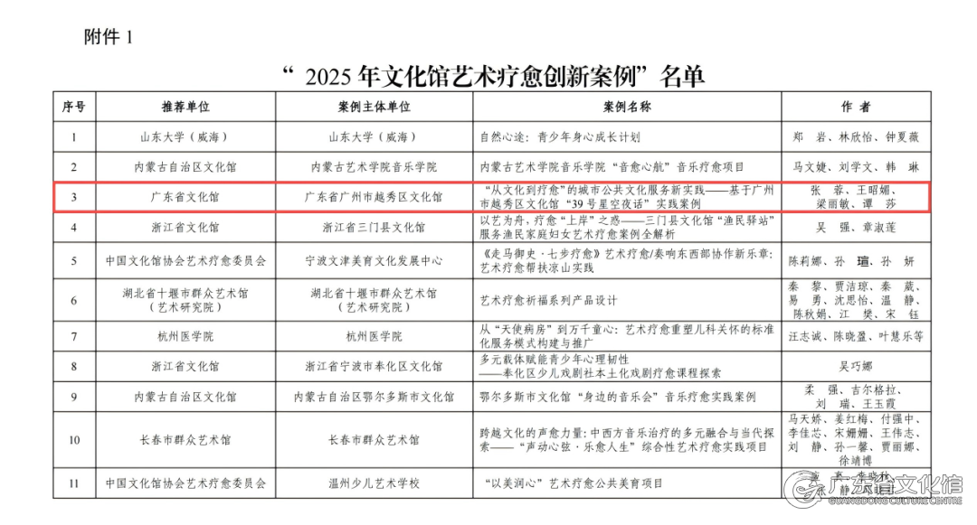 喜报!广东省四个案例入选2025年文化馆艺术疗愈创新案例