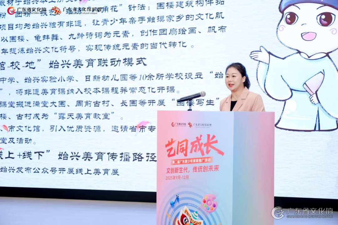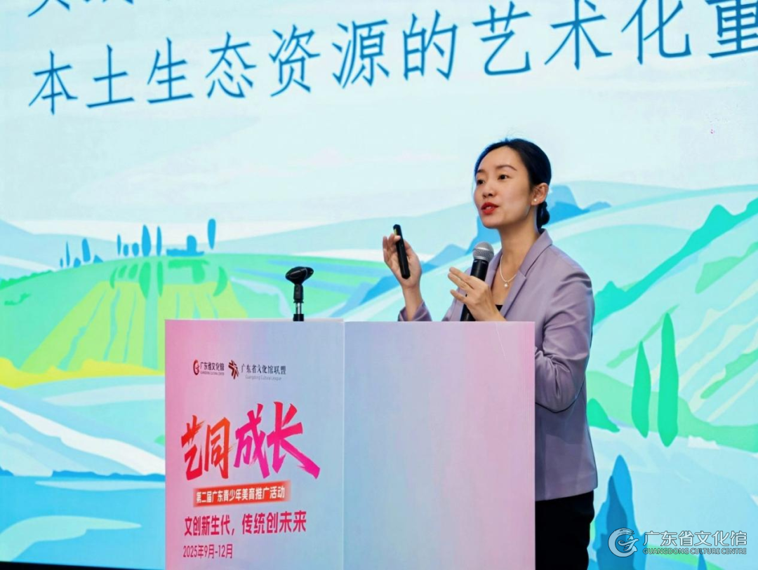 在本次“艺同成长”活动的“创享之美”沙龙现场,从化区文化馆副馆长余钿钿与始兴县文化馆活动部主任朱艳萍应邀分享了当地在推动乡村美育、活化地域文化方面的实践经验与成果。余馆提到,在包括“成长树”在内的多方平台支持下,从化注重将如竹编、水族舞等在地资源转化为可持续推广的校园美育内容,强调从技艺传授延伸至文化理解,引导学生建立乡土认同与审美联结。