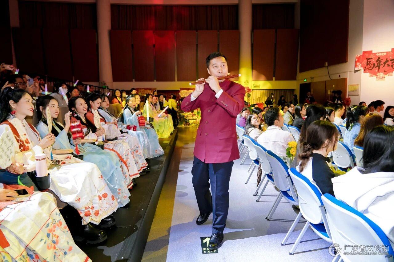 活动在广东民族乐团的演奏家们带来的《步步高》中喜庆开篇。在他们默契的配合下,旋律层层递进、热烈欢腾,用音符传递出“步步登高、万事胜意”的新年祝福。随后,演奏家们带着精湛技艺轮番登场,用音符编织出新春的蓬勃气象。《扬鞭催马运粮忙》清脆跳跃的笛声与明快热烈的扬琴伴奏相映成趣;《赛马》在弓弦翻飞间将骏马驰骋的豪迈与奋进的时代精神展现得淋漓尽致,引得台下掌声雷动。