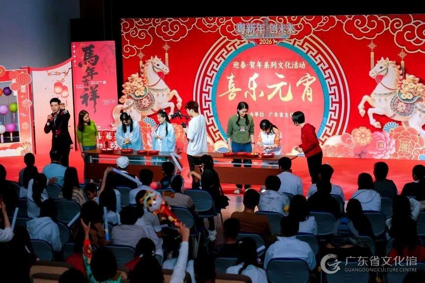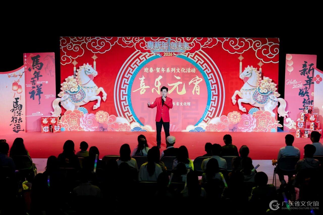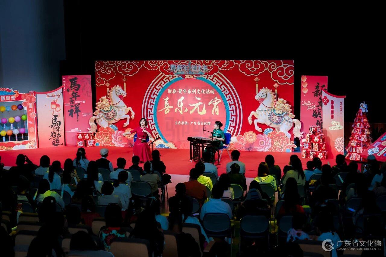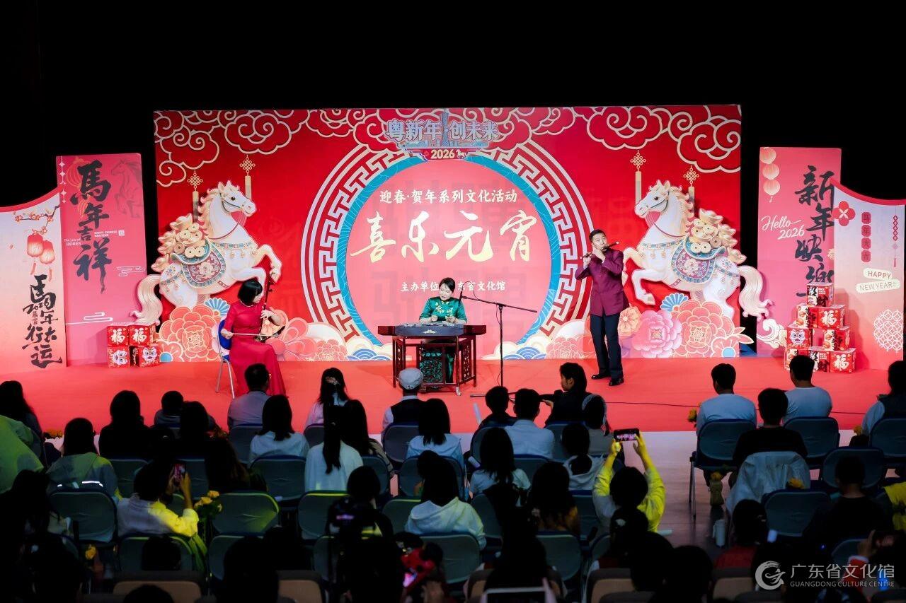 “灯火万家,良宵美景;笙歌一曲,盛世元音。”正月十四晚,省文化馆小剧场内灯火通明,笑语盈盈,“粤新年·创未来”2026迎春·贺年系列文化活动之“喜乐元宵”为超过400名观众献上了一场集民歌、民乐、灯谜、互动、文创摊位于一体的节日盛宴。
