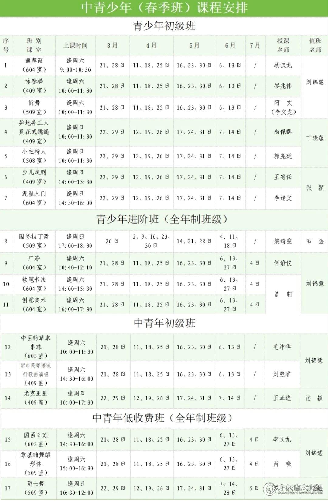 由于报名人数未达到基础开班人数,本学期低收费班别《中国舞基础班》及《国画1班》暂不开班。广东省文化馆将持续关注广大群众的课程需求,不断优化课程安排,力求提供更加符合民众期望的优质文化服务。