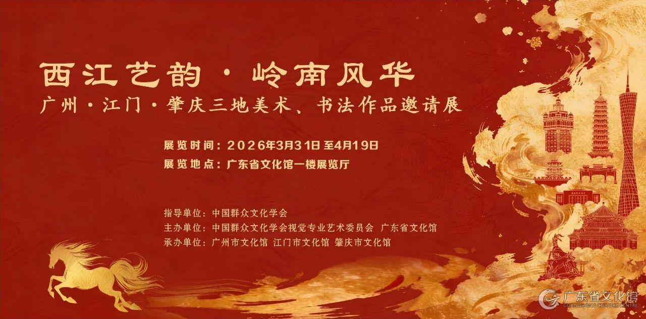 “我在文化馆办展览”第三十九期:西江艺韵·岭南风华——广州·江门·肇庆三地美术、书法作品邀请展将于2026年3月31日(星期二)在广东省文化馆一楼展览厅启幕。