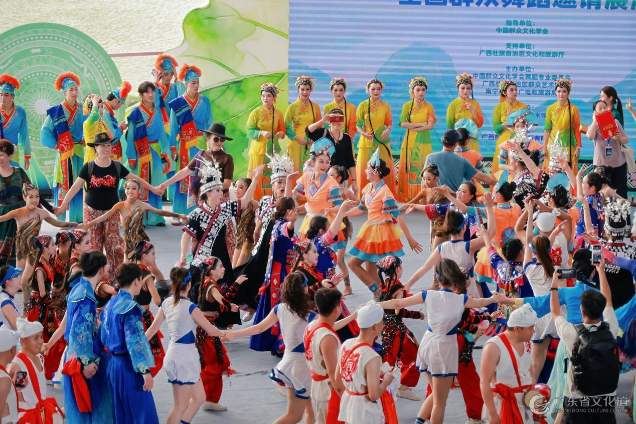 展演尾声,全体演员共舞《相亲相爱》,将现场气氛推向高潮。不同地域、不同年龄的舞者携手起舞,生动诠释了“以舞会友、美美与共”的活动主旨,也彰显了群众文化凝聚人心、促进交融的独特魅力。