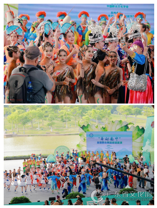 本次活动通过国家公共文化云、广西壮族自治区群众艺术馆微信公众号、南宁群文视频号等平台同步直播,线上观众突破150万人次。同时,通过小红书、微信视频号、抖音等新媒体矩阵进行全方位宣传推广,相关短视频累计播放量已突破1000万,有效拓宽了群众舞蹈的传播界面,真正实现了“艺术惠民、全民共享”。
