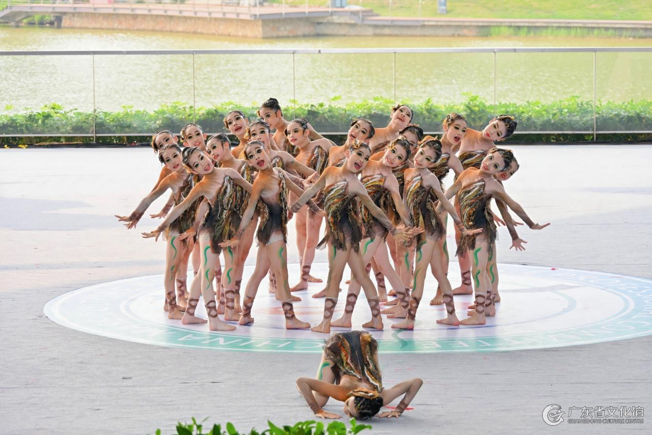 广东省文化馆少儿舞蹈团的小演员们精神饱满、闪亮登场。此次团队携第十三届“小荷风采”全国少儿舞蹈展演“小荷之星”获奖原创作品《大地的心跳》精彩亮相。孩子们用灵动的舞姿、纯真的情感和扎实的舞动表现力,将作品中对大地母亲的礼赞、对生命力的敬畏演绎得真挚而动人。该作品以独特的艺术视角和充满童趣以及富有生命力的舞蹈语汇,诉说着大地的心声,传递出新时代少年儿童对土地、对家园的深深热爱,赢得了现场观众和各地同行的一致好评。作为本次展演中极具活力的少儿舞蹈作品,广东省文化馆少儿舞蹈团是我馆重点打造的公益性少儿艺术团队,汇聚了一批热爱舞蹈的少年儿童,由专业舞蹈教师团队进行系统化、规范化指导。舞团长期致力于少儿舞蹈创作与美育实践,注重艺术性与趣味性相结合,多次在国家级、省级舞蹈赛事中斩获佳绩,已成为展示我省少儿美育成果、推动全民艺术普及、促进青少年艺术交流的重要平台之一。